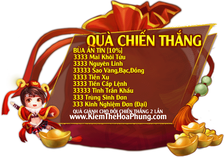 - Quà Chiến Thắng giành cho nhóm Đội giành chiến thắng liên tiếp 2 lần nếu xảy ra trường hợp có 2 đội chiến thắng 1 lần sẽ chia đôi quà cho 2 Đội